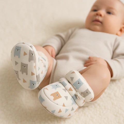 Gemaakt van zachte, kindvriendelijke materialen die goed ademen. Geen harde randen of stiksels die kunnen irriteren. Perfect voor gevoelige babyvoetjes.